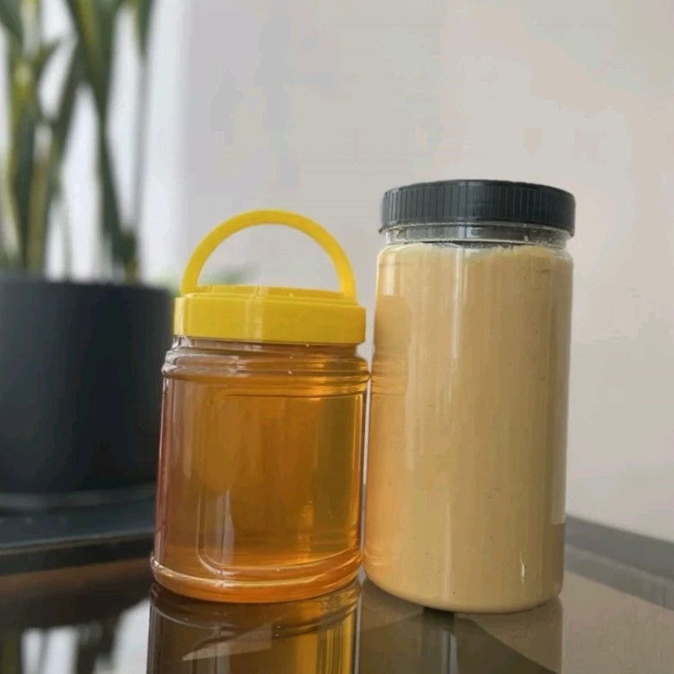 کره بادام زمینی تهیه شده از بادام زمینی خالص ایرانی بدون شکر و نمک و هرگونه افزودنی دیگر ⛔🚫❌🧂🧂🧂❌🚫⛔ مقوی و مناسب ورزشکاران عسل چهل گیاه 🍯🍯🍯با کیفیت و طبیعی طعم عالی 😋،انرژی بخش💪 و مورد تایید مشتریان عزیز 😍
